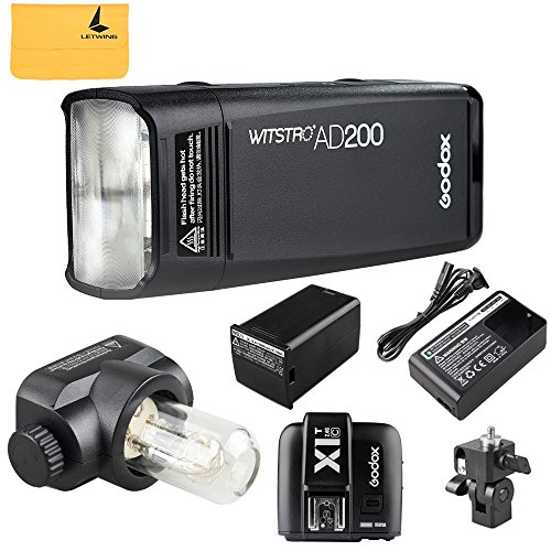Godox AD200 TTL 2.4G HSS 1 / 8000s Taschenblitzlicht Doppelkopf 200Ws mit 2900mAh Lithium Batterie Taschenlampe + GODOX X1T-C Blitz Auslöser für Canon Kamera Blitz Blitz Kit Kundenrezensionen: